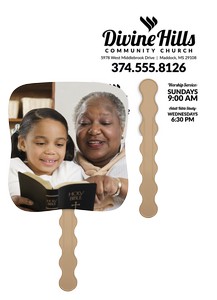 Stay cool and spread your message with this beautifully designed hand-held paper fan featuring an uplifting image on the front and your imprint on the back. Perfect for so many occasions, it combines practicality with a meaningful message, adding elegance to your event while keeping attendees feeling refreshed. The FSC® label means that the materials used for this product come from well-managed FSC®-certified forests and other controlled sources. 7.5" W x 7.75" H