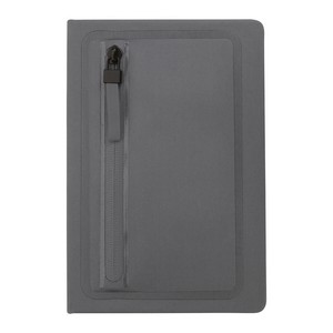 The Sleek Zippered Pocket Journal features a zippered front pocket, 80 lined sheets, and a TPU front cover for a sleek design. 0.5" Diameter x 8" H