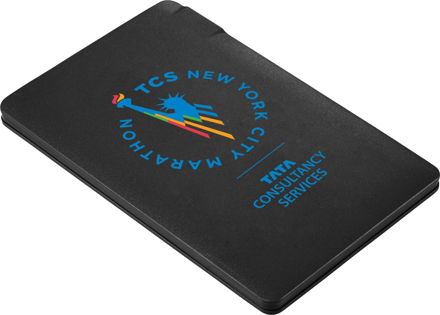 The sleek, slim, lightweight Slim Ion 2,500 mAh Power Bank is the size of a credit card, making it easy to bring with you anywhere. It features a 2500 mAh lithium polymer battery with 5V/1A output and comes with a USB-to-Micro-USB cable that can be used to charge the power bank, your Android smartphone, or any other device featuring a Micro-USB port. Power banks are permitted in carry-on luggage only, and at the discretion of TSA agents. Please charge the power bank before initial use. 0.25" D x 2.25" W x 3.75" H