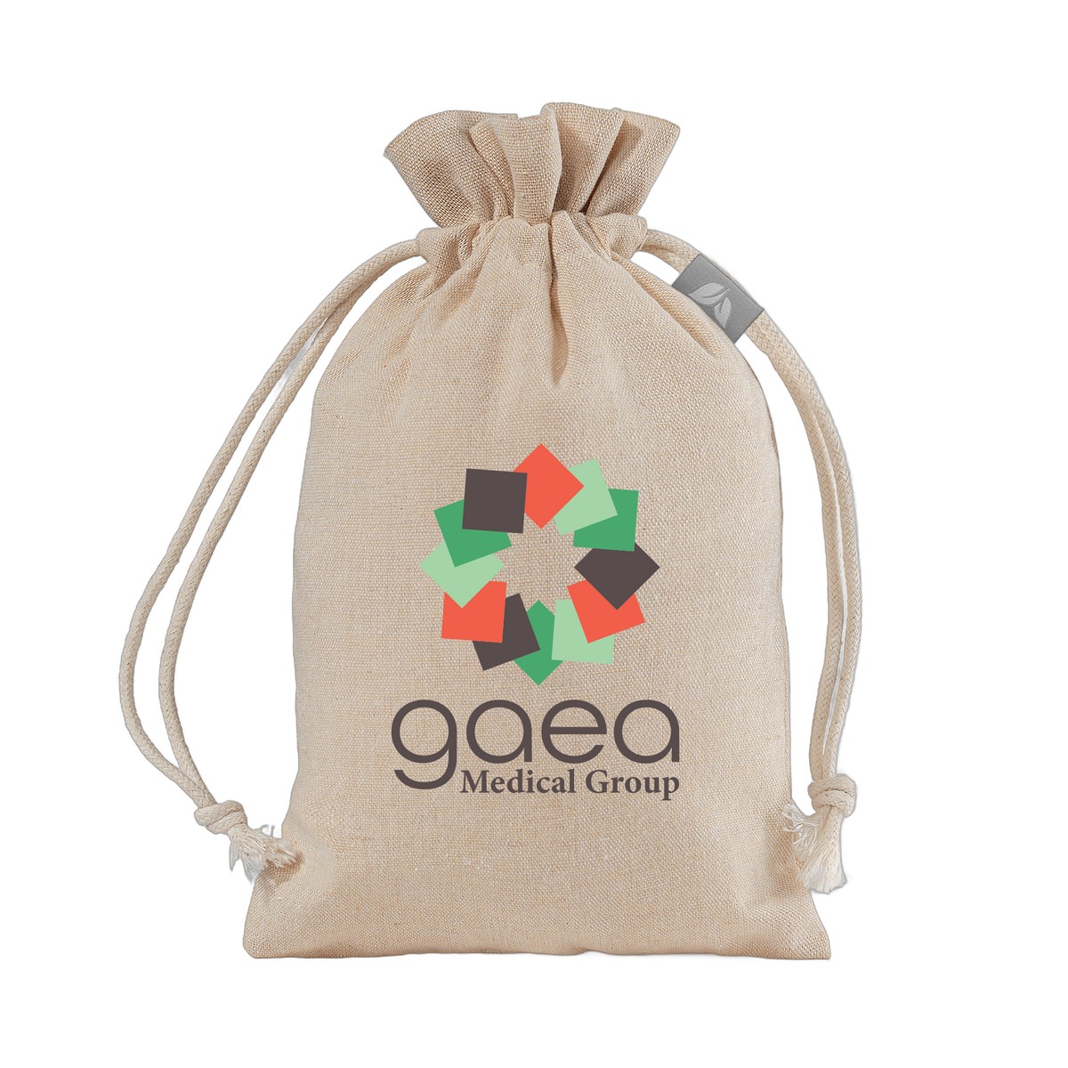 This small size gift bag is made with 4 oz. recycled cotton blend, comprised of 55% recycled cotton + 45% polyester. Your logo will look great, . Complies with Prop 65. 8.66" H x 5.51" W