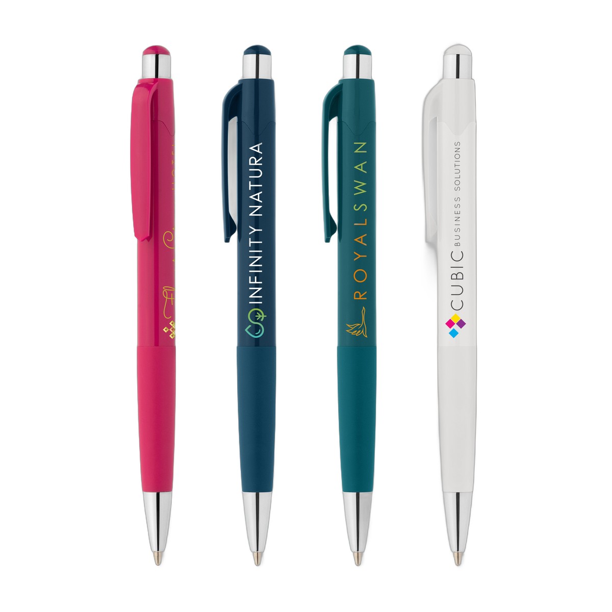 Enhance your promotional strategy effortlessly with the stylish Smoothy Deluxe Pen! This sleek ballpoint pen features a solid ABS and TPE injected plastic barrel with chrome-plated trim, ensuring both resilience and a professional appearance. It boasts a retractable design with a chrome plunger and tip, complemented by a soft grip area for superior writing comfort. Customize the color-matching accent piece with your company logo or message to make a lasting impression. With a 1.0mm tip size and Dokumental ink that writes out up to 500 meters, this pen combines functionality with flair. Available in assorted colors, it's the perfect choice to showcase your brand at any promotional event. Complies with Prop 65. 5.39" W x 0.41" D