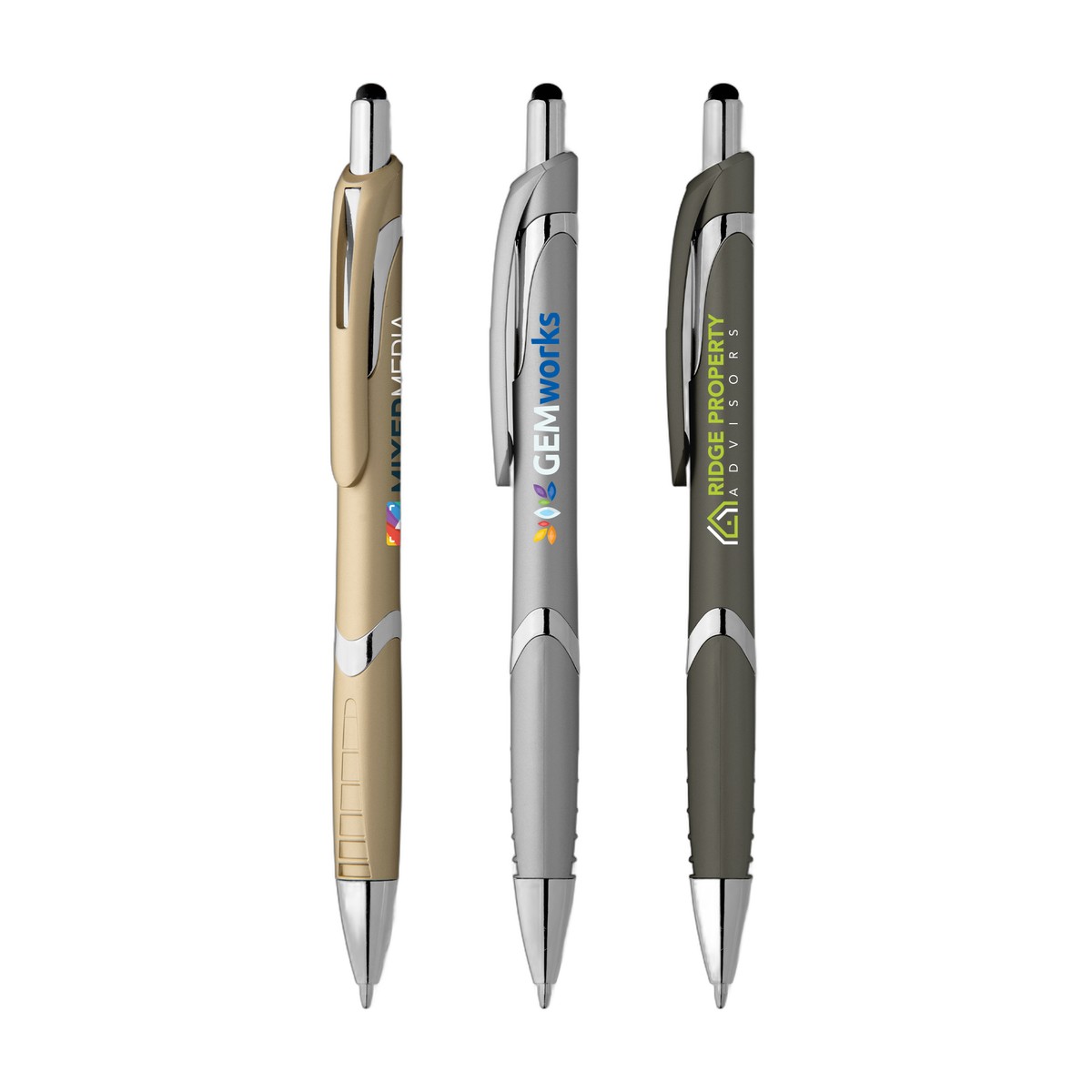The Solana Softy Metallic with Stylus features premium metallic soft-touch barrel colors. This click-action plastic retractable ballpoint pen has a soft, rubberized barrel with a matching grip, plus capacitive stylus for use with all your digital touchscreen devices. Use ColorJet, our vibrant, Full-Color inkjet imprint technology, to add a full-color logo to get your advertising message across at networking events, trade shows, conferences and other marketing opportunities. This attractive pen is an ideal way to promote your brand and connect with your customers! Complies with Prop 65. 5.76" W x 0.45" D