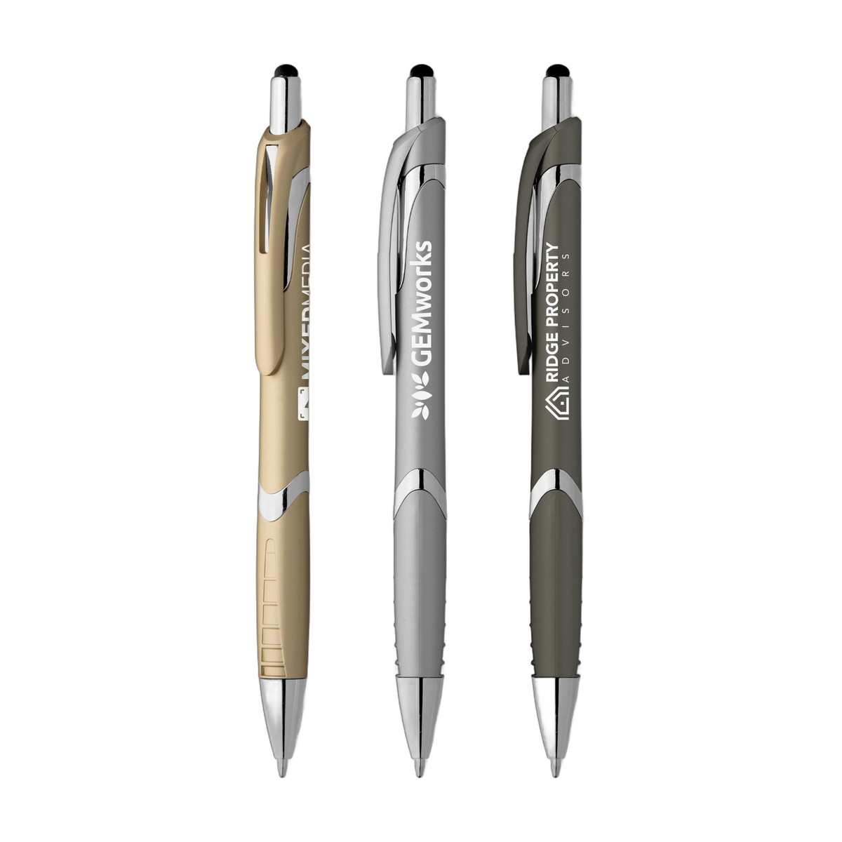 The Solana Softy Metallic with Stylus features premium metallic soft-touch barrel colors. This click-action plastic retractable ballpoint pen has a soft, rubberized barrel with a matching grip, plus capacitive stylus for use with all your digital touchscreen devices. Use ColorJet, our vibrant, Full-Color inkjet imprint technology, to add a full-color logo to get your advertising message across at networking events, trade shows, conferences and other marketing opportunities. This attractive pen is an ideal way to promote your brand and connect with your customers! Complies with Prop 65. 5.76" W x 0.45" D