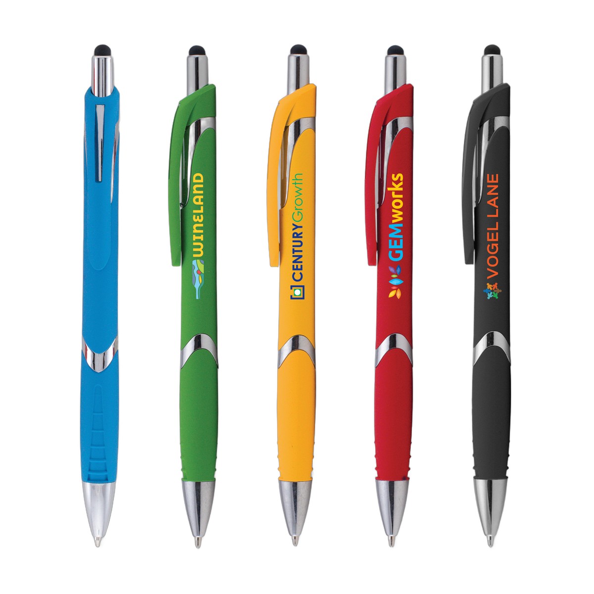 Now available with ColorJet, our vibrant, Full-Color inkjet imprint, the Solana Softy Pen with Stylus is a perfect way to keep in touch with your customers. This click-action plastic pen features a soft-touch rubberized barrel with a matching grip and chrome accents, plus capacitive stylus for use with all your digital touchscreen devices. Add a full-color imprint of your company name and logo to get your advertising message across at networking events, trade shows, conferences and other marketing opportunities. This trendy pen is a surefire way to build your brand and spread your message! Complies with Prop 65. 5.76" W x 0.45" D