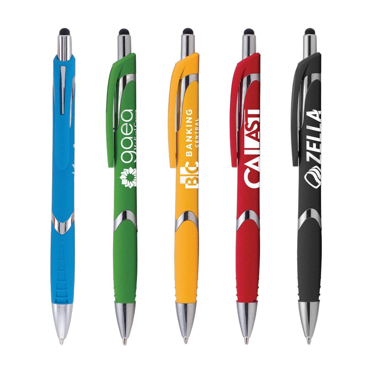Now available with ColorJet, our vibrant, Full-Color inkjet imprint, the Solana Softy Pen with Stylus is a perfect way to keep in touch with your customers. This click-action plastic pen features a soft-touch rubberized barrel with a matching grip and chrome accents, plus capacitive stylus for use with all your digital touchscreen devices. Add a full-color imprint of your company name and logo to get your advertising message across at networking events, trade shows, conferences and other marketing opportunities. This trendy pen is a surefire way to build your brand and spread your message! Complies with Prop 65. 5.76" W x 0.45" D