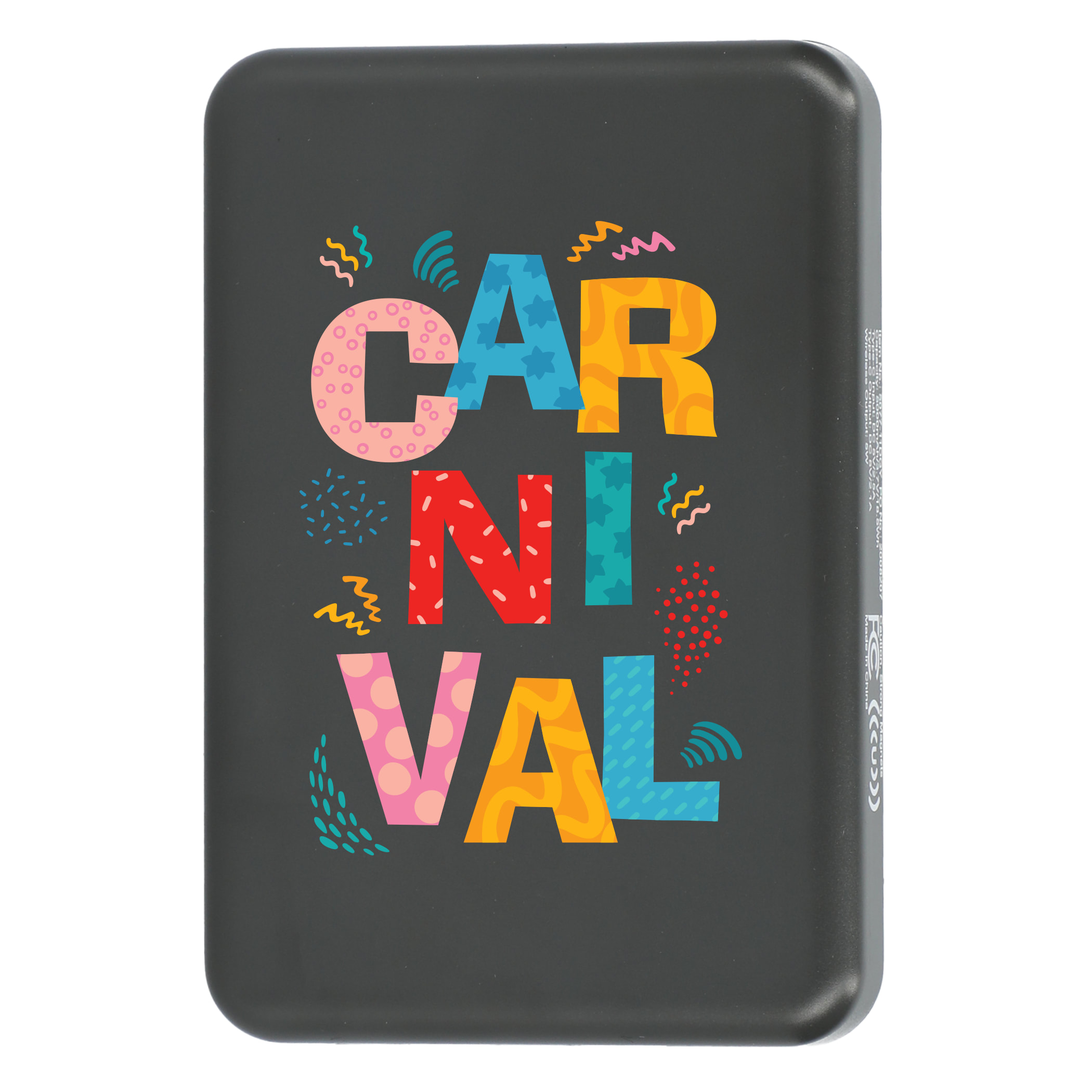 Discover the Solekick™ MagClick™ 5000 mAh Wireless Power Bank - a versatile charging pad or regular power bank on the go. It features with a rechargeable lithium polymer battery (18.5Wh). iPhone 12/13/14/15 models can be attached magnetically for wireless charging, and it supports 5W wireless charging for most newer devices. Type C Input/Output: 5V/2.1A. This device works with any smartphone or tablet - even ones without wireless technology - through the normal power bank capabilities. Includes a 31-inch USB-A-to-Type-C charging cable. Packaged in a FSC certified premium gift box. Power banks are permitted in carry-on luggage only, and at the discretion of TSA agents. Please charge the power bank before initial use. 3.88" D x 2.50" W x 0.50" H
