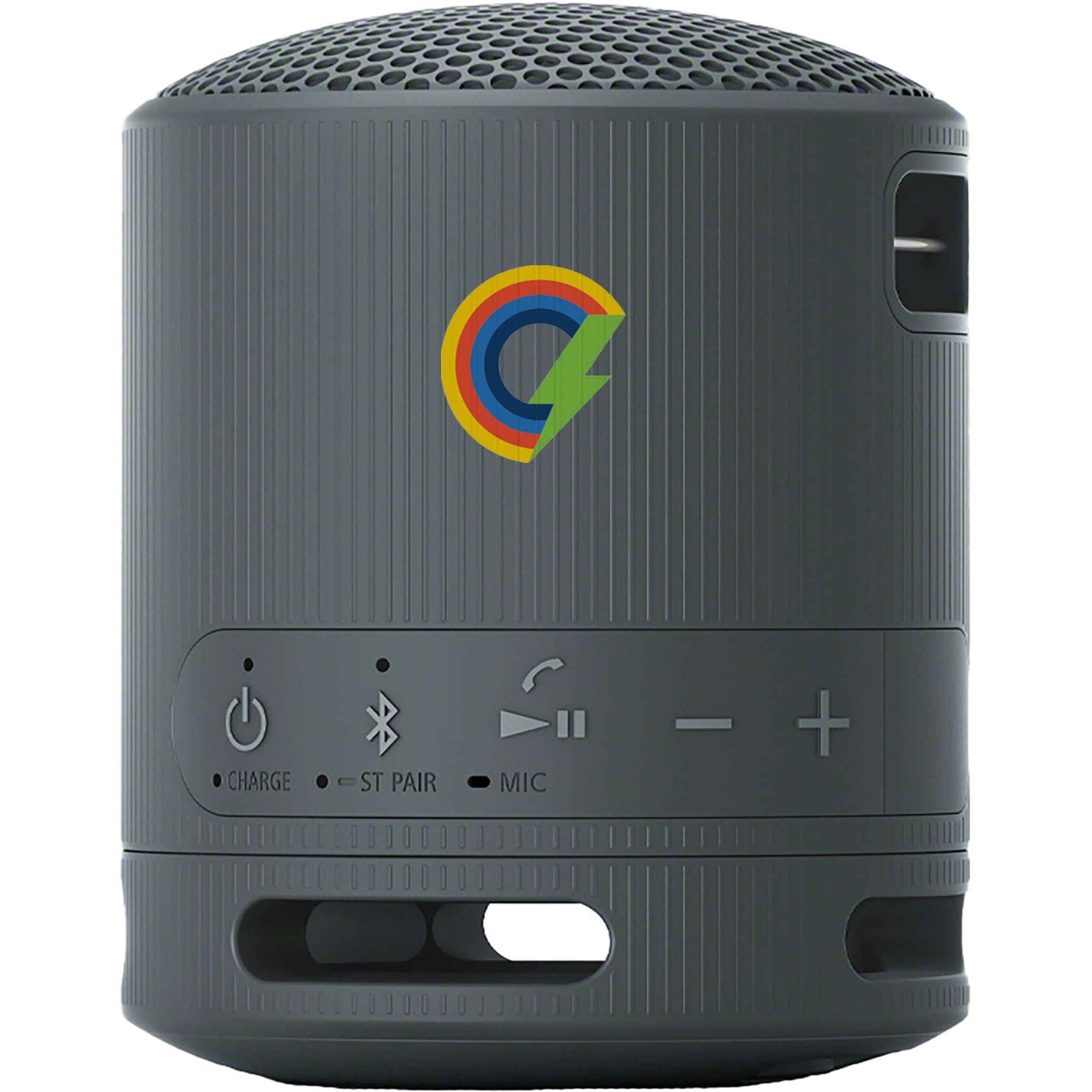 Enjoy big sound with the super-compact SRS-XB100 wireless speaker, offering powerful, clear sound, a waterproof and dustproof design, and up to 16 hours of battery life. The extra-durable XB100 is waterproof and dustproof with an IP67 rating. It's small enough to fit in a bag or cupholder, the XB100 also features a versatile strap to take with you wherever you go. 0.00" D x 0.00" W x 3.70" H