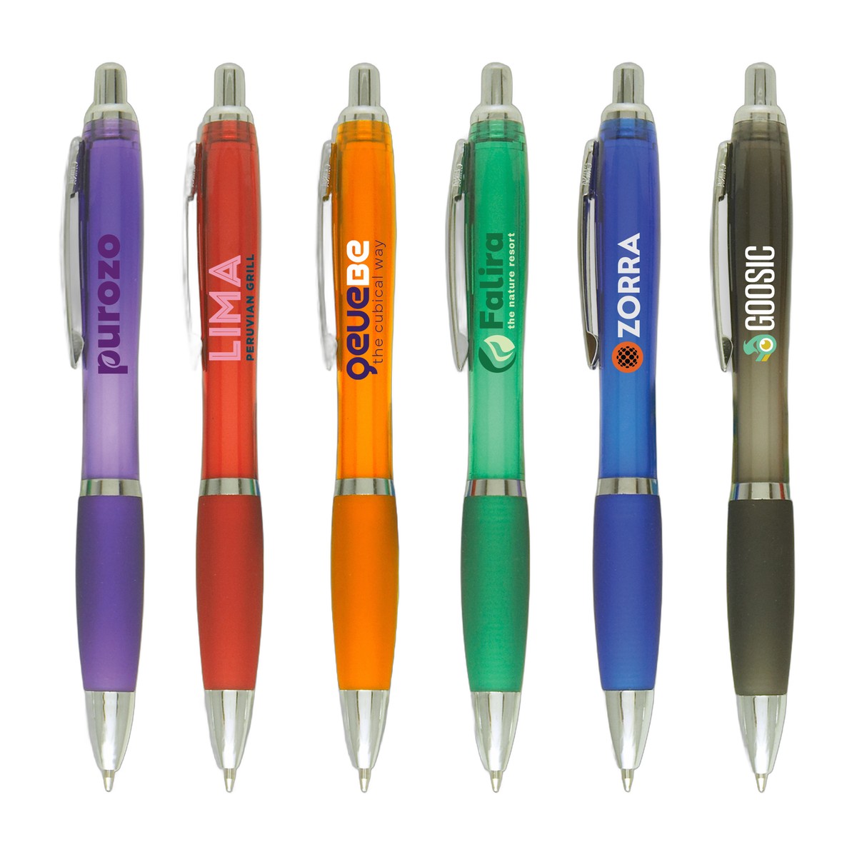 Your clients will love writing with the Sophisticate Pen! With its vibrant, jewel-tone barrel and grip colors, this shapely plastic pen creates the wow factor everyone is looking for. Assorted colors are also available. This medium ballpoint plastic pen with black ink can be everything you need once you add your company name, logo and promotional message to it. Show everyone why you are the company they want to do business with! Complies with Prop 65. 5.51" W x 0.51" D