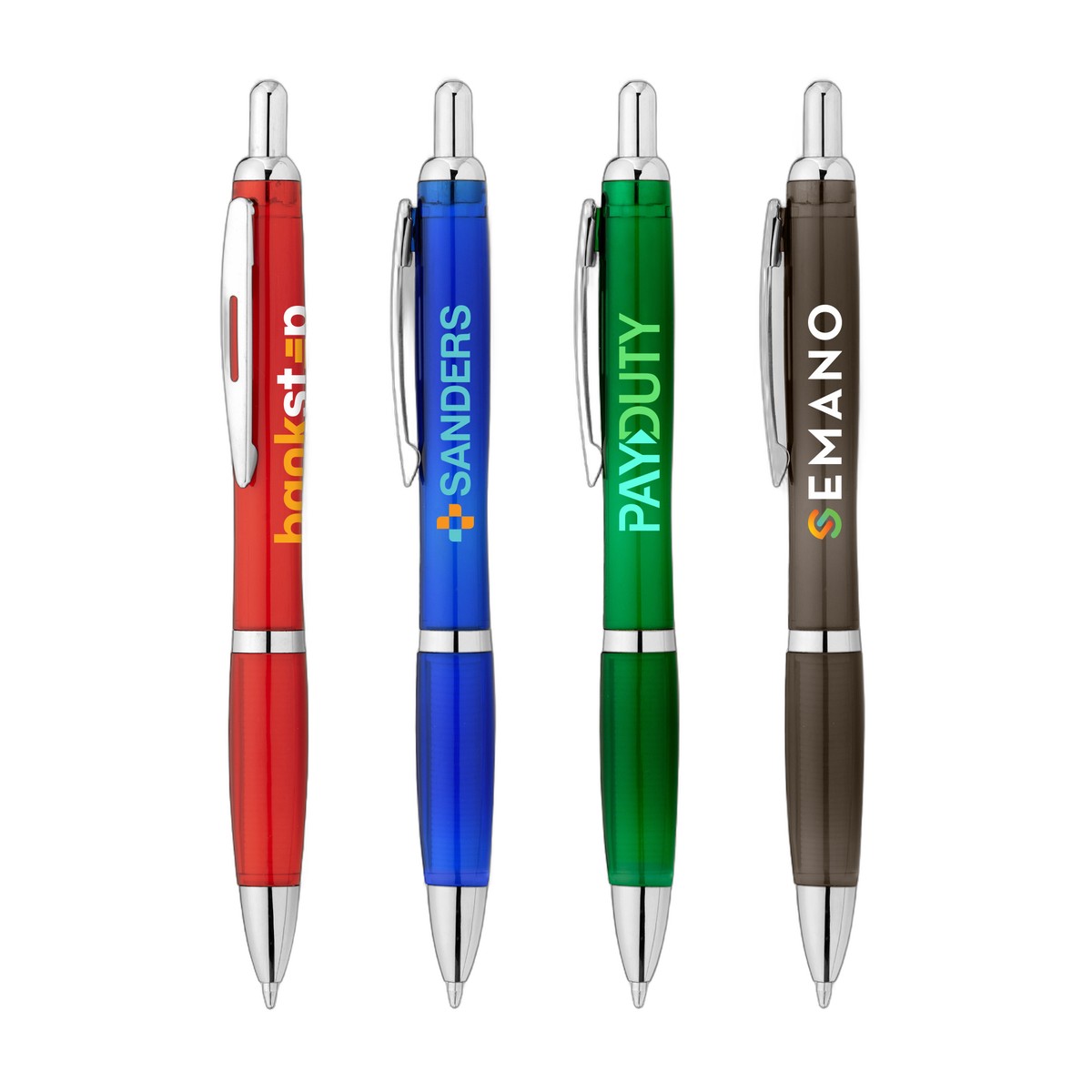 Earth-conscious brands now have the perfect writing instrument to highlight company logos and messages memorably. This click-action pen is a fresh take on an industry-favorite design, featuring a shiny classic colored curved barrel and modern chrome trim. This Sophisticate Pen is a great way to promote brands. . Complies with Prop 65. 5.51" W x 0.50" D