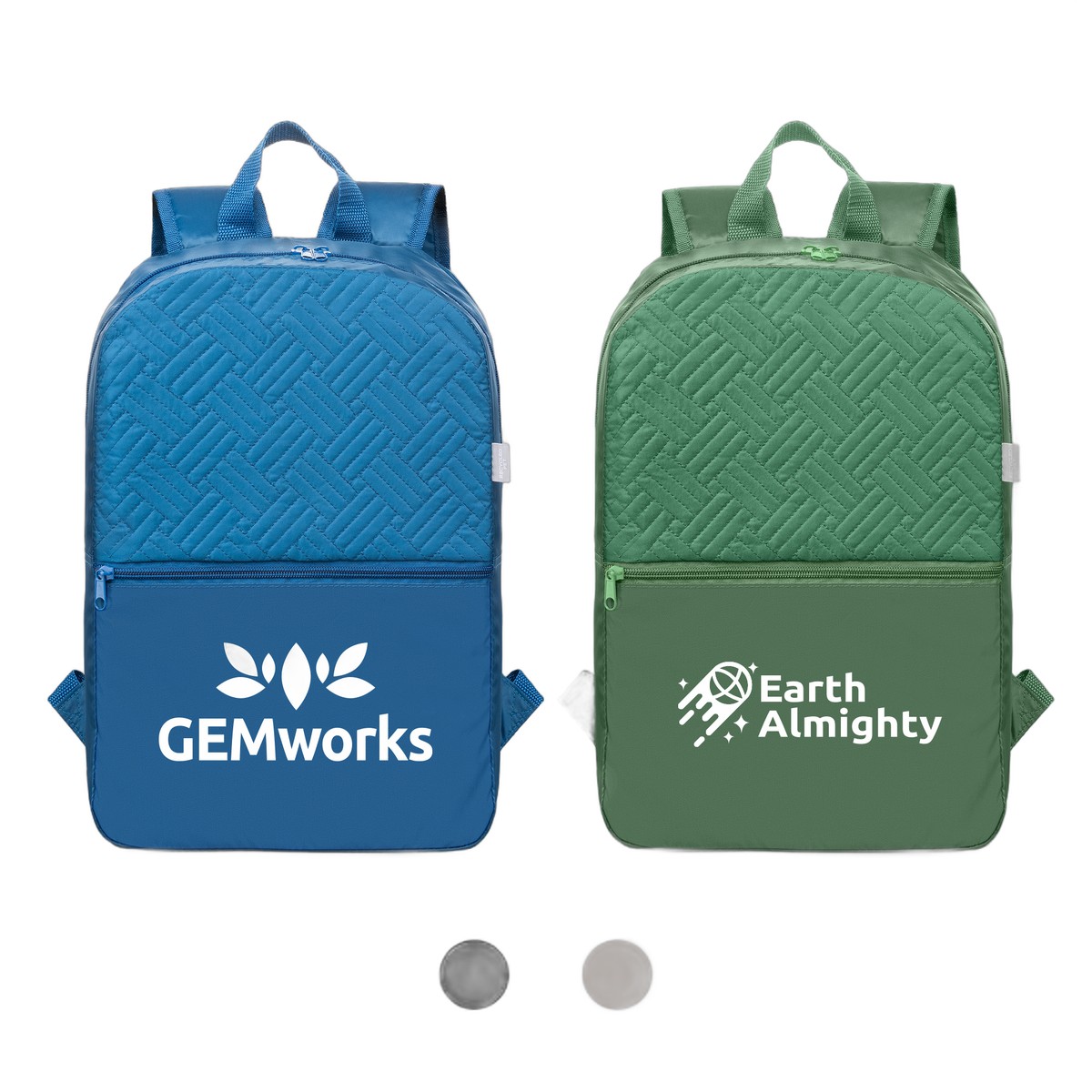 Keep your gear close with the Sora, a stylish and accessible backpack that elevates a basic shape with premium detailing. This functional 13-liter backpack's panels are made from 210D 100% post-consumer recycled polyester (rPET). Its elevated design features a striking quilted front panel that adds a sophisticated, tactile look. The bag is practical for daily use, offering a zippered main compartment and a zippered front pocket for easy organization. With color-matched straps and zippers, the Sora is positioned as an entry-price-point option that maintains a high level of style, making it an excellent choice for everyday use. 15.75" H x 10.63" W x 4.72" D