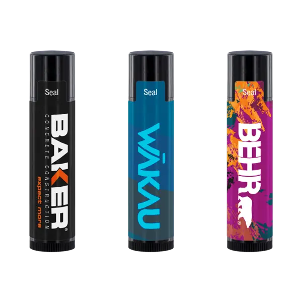 Don't let an event go down the "tubes." Choose this SPF 15 lip balm in black tube. This product has a beeswax base and is free of oxybenzone, PABA and Gluten free. USA Made. DIN compliant. Includes up to 3 flavors. Complies with Prop 65. 2.625" H x 0.625" Diameter