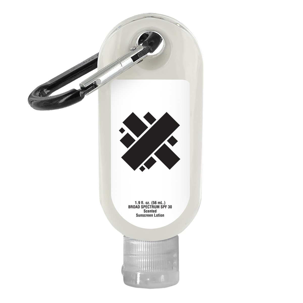 Stay protected on the go with this 1.9 fl. oz. broad-spectrum SPF-30 sunscreen lotion. The convenient flip-top bottle, featuring an attached carabiner, easily clips to bags or gear, keeping sun protection within easy reach. Available in unscented or coconut, it?s a must-have for travel, outdoor events, and everyday use. Complies with ANSI, CPSIA, FDA, Prop 65. 1.625" W x 4.5" H x 1" D