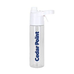 FEATURES- 20 oz rPET Spray water bottle- Multifunction refreshing mister and water bottle All in One- Screw off Lid for easy filling- Twist off cap for Spout.- Push handle for Misting- Sturdy handle for easy carry- Leak resistant- Cold liquids only. 10.5" H x 2.6" Diameter