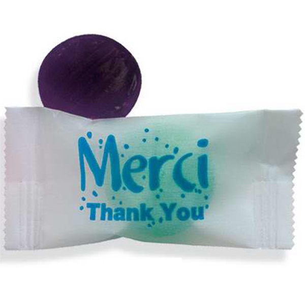 Show your good hospitality and say "Merci/Thank You" to your guests, clients, employees and anyone else that needs thanking. These individually wrapped candies are perfect if you're looking for a sweet way to say thanks to anybody, for deeds small and large. The 5 flavor crystal fruit candies are melt-proof and are perfect for restaurants, French-themed events, conventions, reception desks and much more! Priced per case of 1,000.