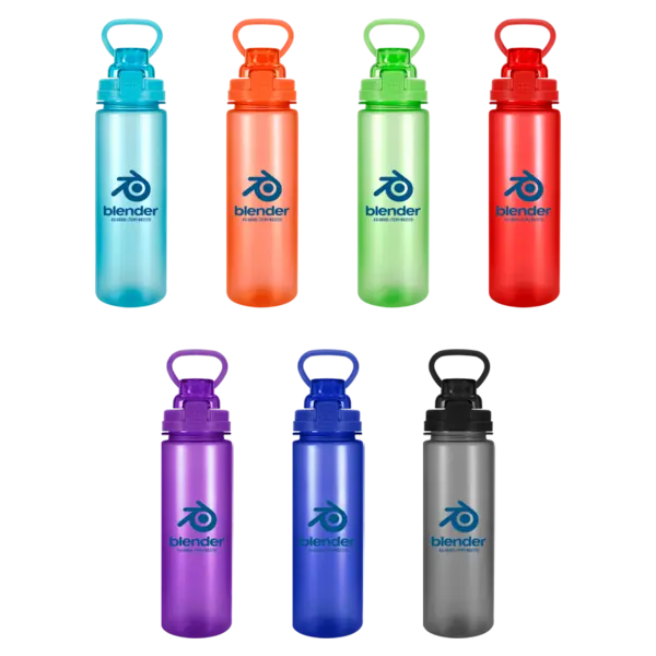 Stay Hydrated with the Stream AS Water Bottle! 27 Oz. Single wall, AS body bottle. Frosty Matte finish w/plastic loop handle. Push button to raise lid. 3" D x 10" H