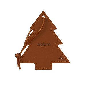 Tannenbaum tree ornament with leather shoelace tie. Choose from a variety of domestic, USA Made, leather colors and customize to match your company logo to create something truly unique. Colors and distress marks will vary - Variations found in natural leather. Complies with Prop 65. 4.5" W x 5" H