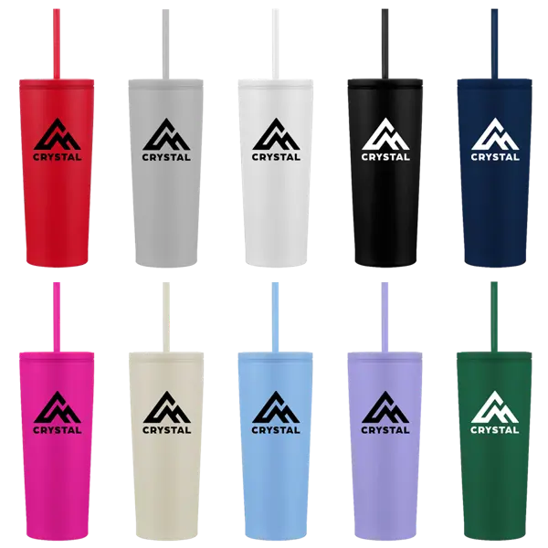 Ready to quench your thirst for style and functionality? Meet the Telluride 24oz Straw Tumbler—your ultimate hydration hero. With a generous 24-ounce capacity, it keeps your drinks flowing whether you're on a road trip, at your desk, or hitting the gym. Featuring a sleek double-wall design with a durable stainless steel outer and a plastic inner, it maintains drink temperatures longer while staying condensation-free. The screw-on lid with a center straw hole and included straw makes sipping easy and spill-free. Powder-coated for a smooth, modern finish, it's tough enough for everyday adventures and refined enough for a polished look. Fits most car cup holders, BPA-free, and built for cold drinks with personality—this tumbler is ready to roll with you! 8.46" H x 3.43" Diameter