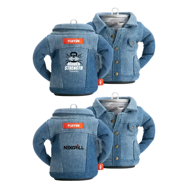 Give your can some classic cool with The Denim Can Cooler, by Puffin Drinkware—the jean jacket your 12 oz beverage always wanted. With high-quality stitching, a soft inner lining for a snug fit, and a functional design that keeps drinks chilled longer, it's as durable as your favorite pair of blues. The playful front pocket detail makes it equal parts practical and fun, while the hand-washable construction means it's always ready for your next backyard bash or outdoor adventure. Versatile, giftable, and undeniably stylish—this is one denim look that never goes out of style. 5" H x 6.5" W