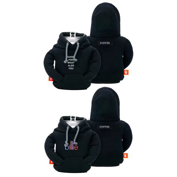 Give your can a wardrobe upgrade with The Hoodie Can Cooler, by Puffin Drinkware—the ultimate blend of cozy and cool. With premium insulation that keeps drinks cold and hands comfy, this hoodie-inspired design fits both 12 oz and 16 oz tall cans like a champ. A functional drawstring hood insulates the top, fixed sleeves double as handy grips, and a rubberized base keeps things steady on any surface. Lightweight yet durable with reinforced stitching, a soft-touch exterior, and compact portability, it's built for camping trips, tailgates, backyard hangs, and wherever good times go. Because nothing says "chill" like a drink in a hoodie. 7.5" H x 5.5" W