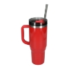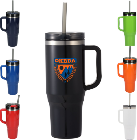 Introducing the Thor 40 oz Eco-Friendly Straw Tumbler - your ultimate companion for staying hydrated while being kind to the planet. This tumbler combines a robust double-wall construction with a sleek, high-gloss stainless steel exterior, ensuring your drinks stay at the perfect temperature, hot for 2 hours and cold for 4 hours, no matter where you are. Designed with practicality in mind, the Thor tumbler comes with a 40-ounce capacity, reducing the need for frequent refills. Its slim base is crafted to fit into most cupholders, making it the ideal travel partner for your daily commutes or outdoor adventures. The comfortable carry handle, made from 100% recycled food-grade plastic, ensures easy transportation, while the color-matching swivel closure adds a touch of style. The tumbler's splash-proof press-on lid, also made from eco-friendly recycled plastic, features two openings with a swivel closure, catering to both sippers and chuggers alike. The included straw is not only food-grade but also made from recycled materials, emphasizing our commitment to sustainability and daily reuse. Remember, this tumbler is hand-wash only to maintain its quality and durability. Whether you’re sipping or chugging, the Thor 40 oz Straw Tumbler is designed to support your hydration needs while you support the environment.