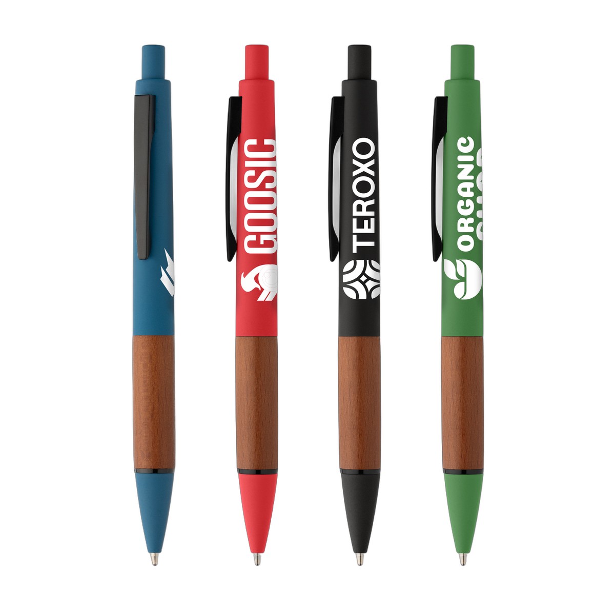 Our Tide Pen is a distinguished writing instrument that blends modern style with natural materials. This retractable pen features a barrel, plunger, and tip made from recycled ABS plastic (rABS) with a smooth, soft touch finish. The design is elevated by a stained FSC® acacia wood grip, which provides a comfortable and secure hold. The pen features color-matching plastic parts and is contrasted by a sleek black clip. The pen is equipped with a black German Dokumental ink slim refill that delivers smooth writing through a 1.0mm tip and provides a generous 500-meter write out. 5.71" W x 0.39" D