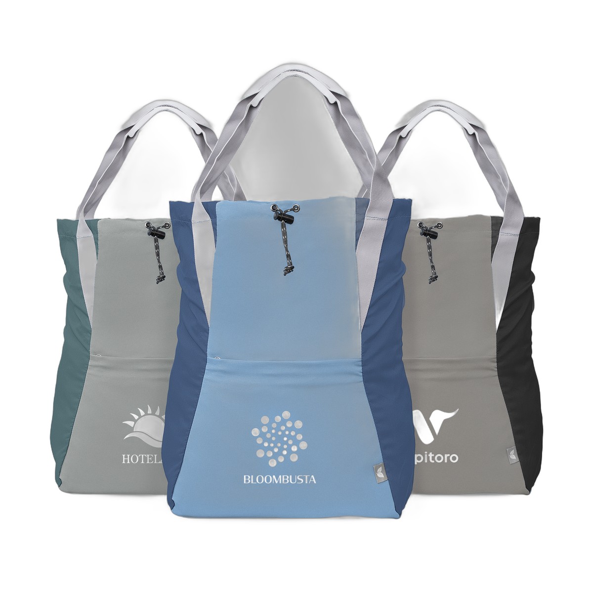 The Tilden Tote & Backpack is a versatile bag that adapts perfectly to any occasion. This 16-liter bag lining is made from lightweight T400 100% post-consumer recycled polyester (rPET), offering an alternative material with the look and feel of premium nylon. Its dual functionality allows it to be used as a tote bag (with two top webbing handles) or quickly converted to a backpack (with two adjustable shoulder straps), providing flexibility for daily use or travel. The main compartment closes securely with a rope and plastic buckle, and includes a small interior pocket for valuables, plus a zippered front pocket. Inspired by modern retail trends, the Tilden is a stylish and practical everyday accessory. 17.72" H x 15.75" W x 5.12" D