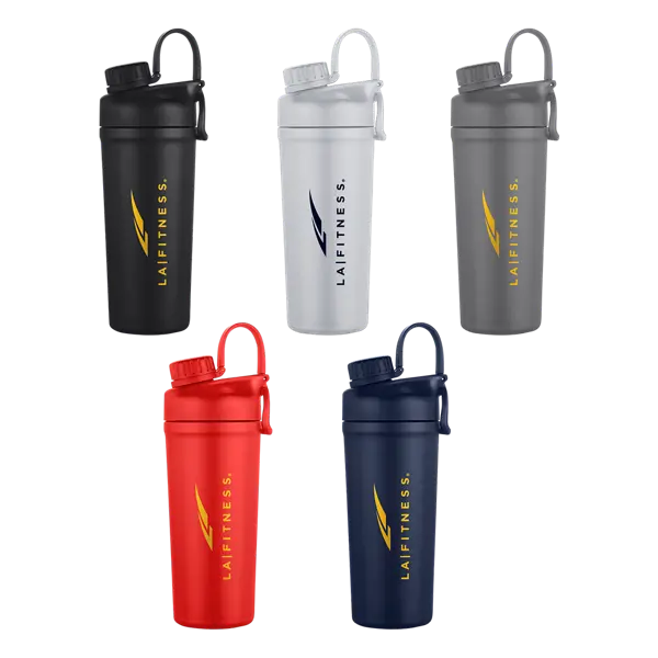 Mix, shake, and conquer your hydration goals with the Topeka 26oz Vacuum Shaker. Built for performance, this double-wall stainless steel shaker keeps your drinks cold while you power through workouts or busy days. The built-in stainless steel mixing ball blends your protein shakes or smoothies to perfection—no clumps, no fuss. The screw-off lid features an attached spout cover for spill-free shaking, while the loop handle makes it easy to grab and go. BPA-free, sleekly designed, and presented in a gift box, it's the perfect combo of style and function for fitness buffs and drink enthusiasts alike. 8.74" H x 3.39" Diameter