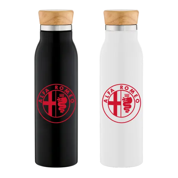 20 Oz. Double wall vacuum insulated stainless steel water bottle. Real wood screw on lid with stainless steel inner. Smooth matte finish; stainless steel accent; eco-friendly. Not microwave safe; handwash only. 10.2" H x 2.875" W