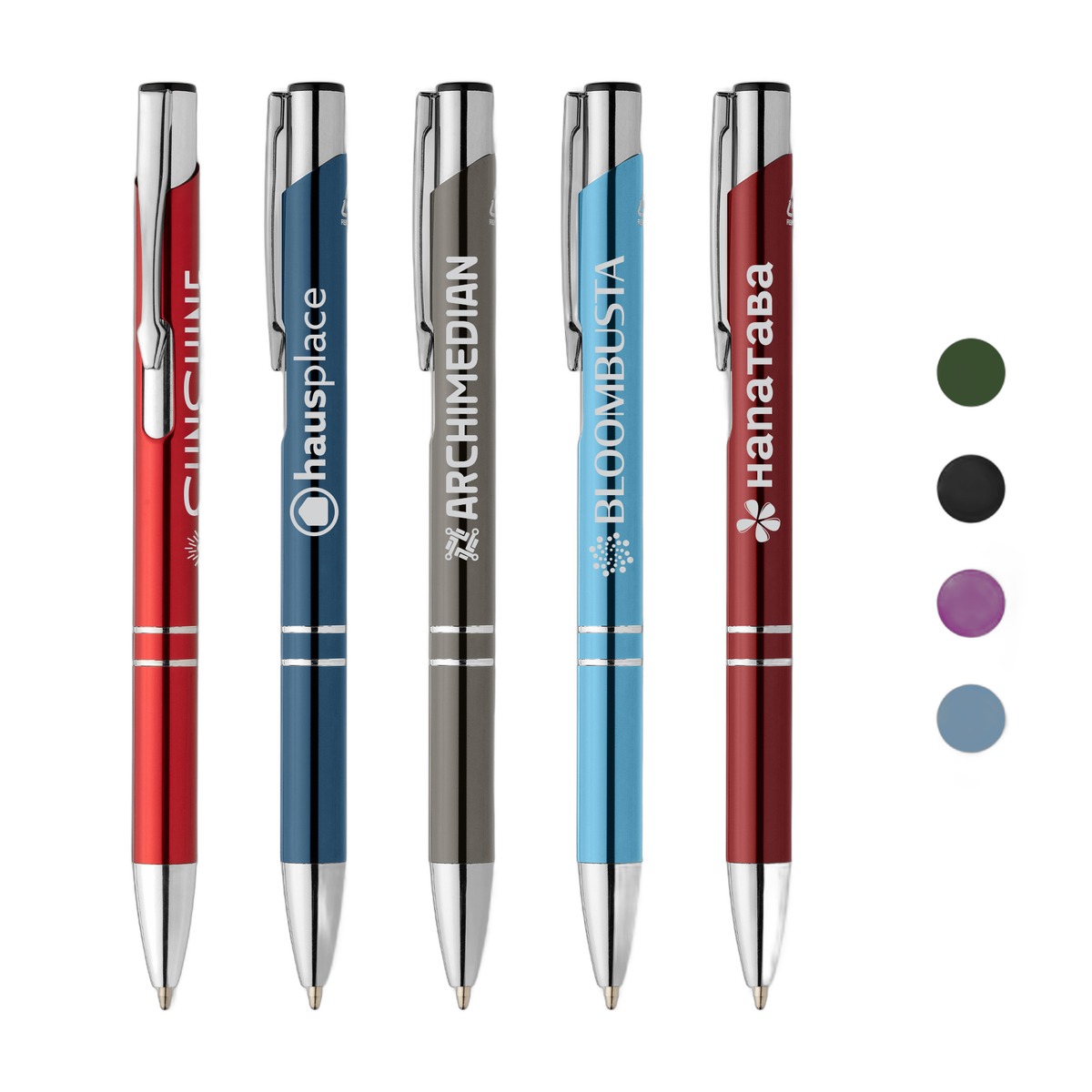 Our popular Tres-Chic Pen is an upgrade to a top-selling, classic design. This retractable metal pen has been redesigned to feature a barrel now crafted from recycled aluminum featuring a smooth, vibrant shiny metallic finish. The pen maintains a sophisticated appeal with brilliant chrome trim on the steel clip and on the tip and plunger (made from rABS plastic). Equipped with a slim German Dokumental ink refill, the Tres-Chic delivers smooth writing through a 1.0mm tip and provides a reliable 500-meter write out length in both black and blue ink. This pen offers the same beloved performance and style as the original, now with a superior, conscious material story and a polished look. 5.39" W x 0.39" D