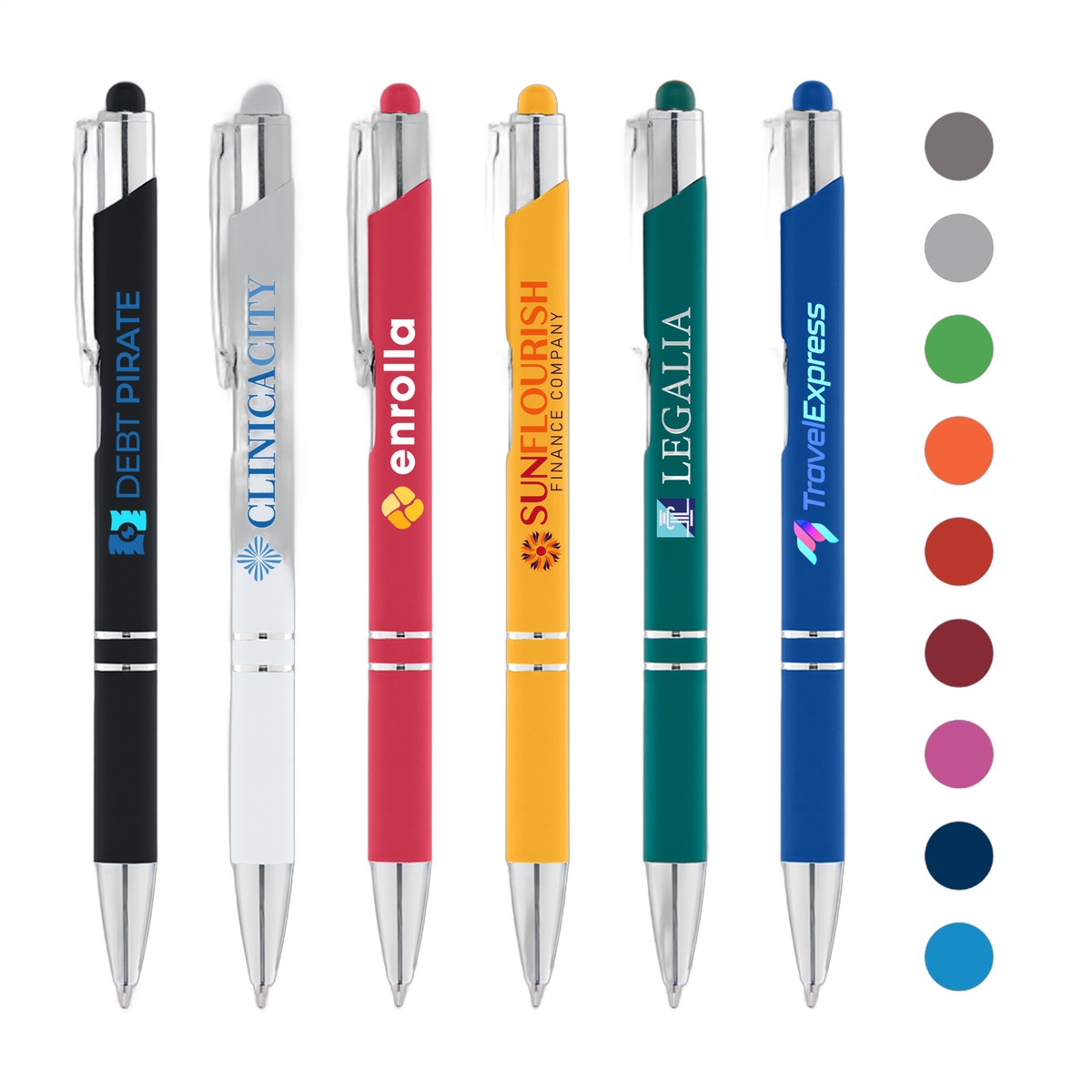 The Crosby Softy Pen with Top Stylus blends soft-touch comfort with tech functionality, featuring a rubber finish and a stylus on the plunger. It's equipped with a jumbo FMA refill and Dokumental ink for up to 2000m of smooth, bold writing. Complies with Prop 65. 5.55" W x 0.39" D