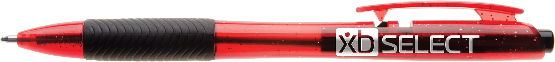 Sparkling translucent barrels and trim. Hourglass barrel and ribbed grip for writing comfort. Unique clip activated retraction. "HUB" branded clip and smooth writing black ink. Material: Plastic Standard Decoration Includes: 1 Color, 1 Location All Available Decoration Options: Silk Screen: 1.5" W x 0.5" H Barrel Tip Type: Ballpoint Mechanism: Push Retractable Standard Packaging: Bulk Tags: plastic, cost effective, popular, pen, tradeshow, trade, show, desk, office, advertisement, college, grade, writing, merchandise, study, high school, university, essay, list, home