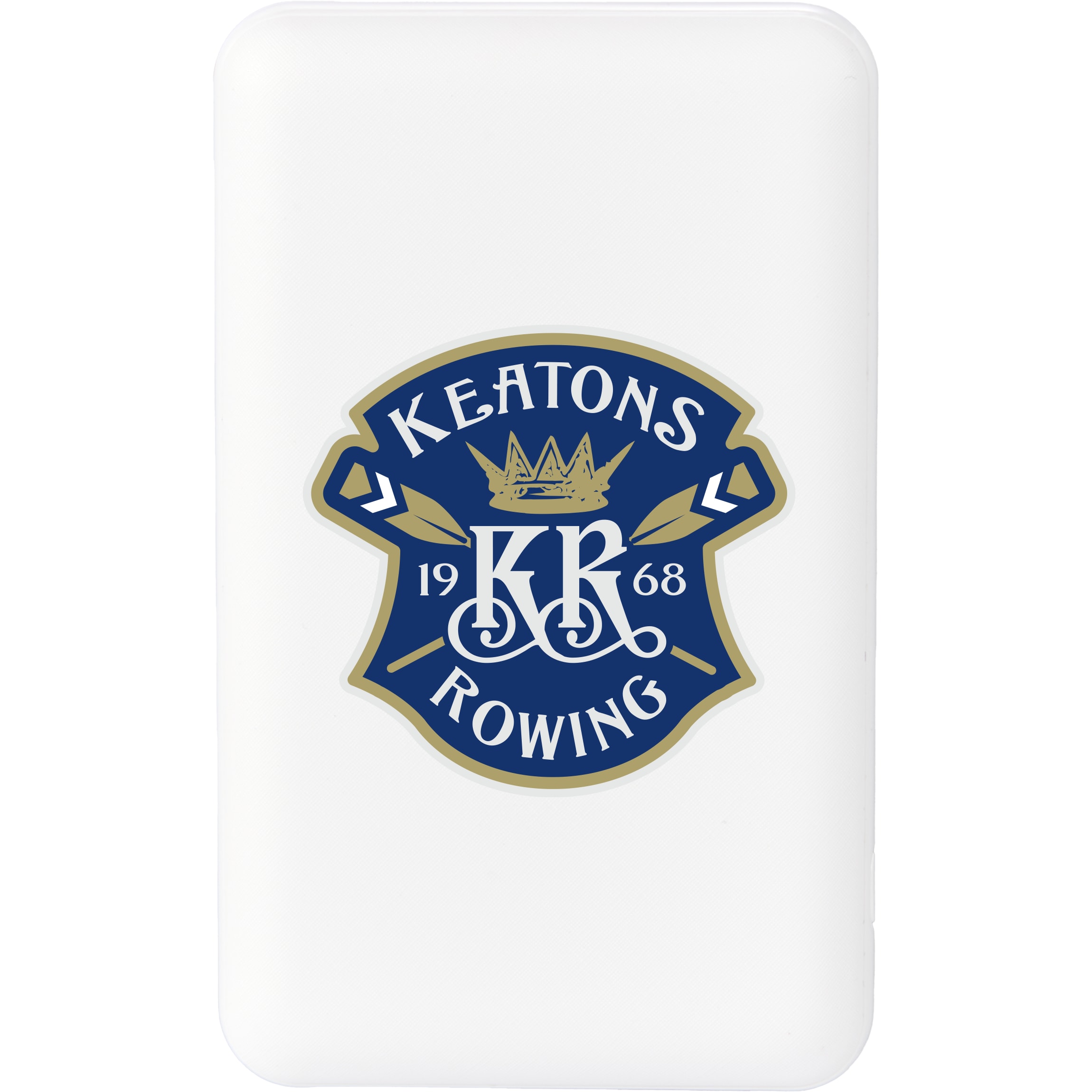 The UL Listed Connect 5000 mAh Wireless Power Bank features a rechargeable lithium polymer battery (18.5Wh) for charging smartphones and other devices. It also offers 5W wireless charging and works with most plastic phones cases or covers on. Type-C Input/Output: 5V/2A; USB-A Output: 5V/2.1A. UL certified. Includes a 19-inch USB-A-to-Type-C charging cable. Packaged in a FSCĀ®-certified white gift box. Power banks are permitted in carry-on luggage only, and at the discretion of TSA agents. Please charge power bank before initial use. 4.13" D x 2.48" W x 0.39" H