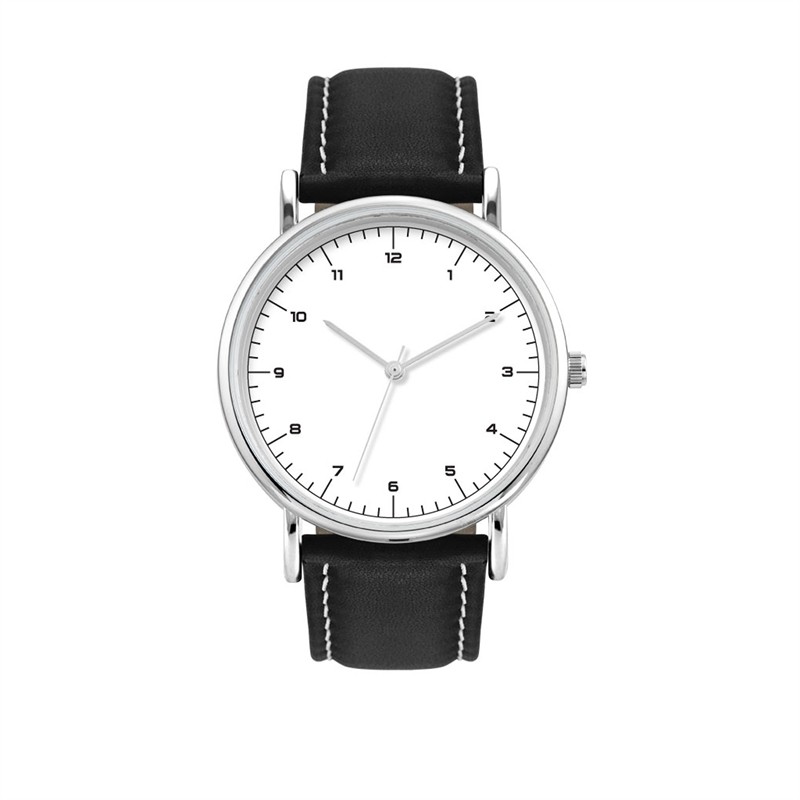 38mm Polished Silver Metal Case, High Precision Japanese Movement, Flat Mineral Crystal, Leather Strap, Water Resistant to 1 ATM. Complies with Prop 65.