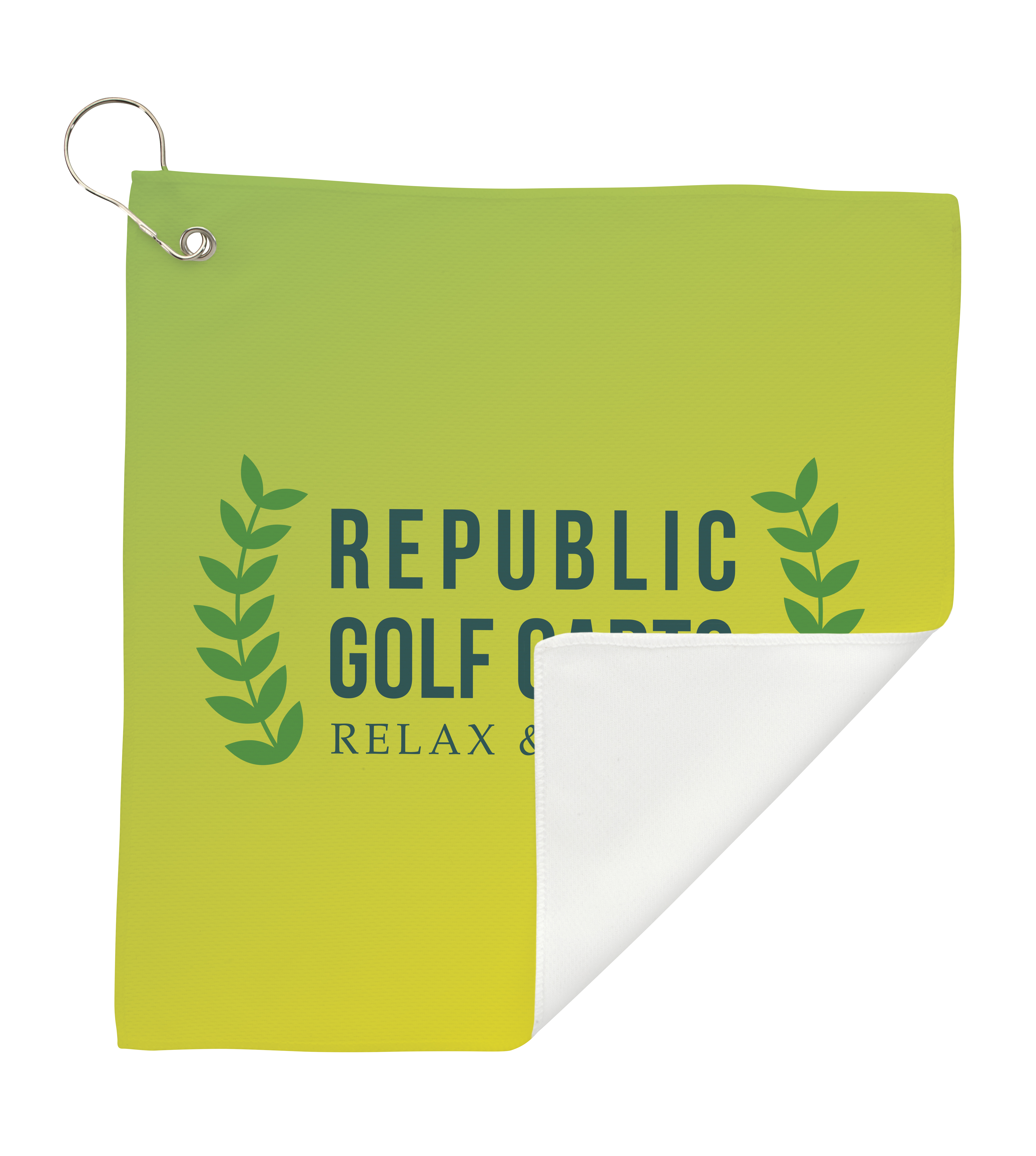 When things heat up on the course, keep your cool with this colorful towel. Lightweight and compact, you can attach it to your bag with the metal hook. 11.75" W x 11.75" H