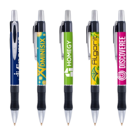 Sway new and potential clients in your direction with the help of the Vantage Pen! This medium barrel ballpoint pen features a contoured rubber grip, metal clip and bright chrome accents. It can be customized using the SimpliColor (TM) printing process, giving you one of the largest one to four color process imprints. It's equipped with our gel-like Eversmooth (R) ink that gives an extraordinary writing experience in black and blue ink choices.
