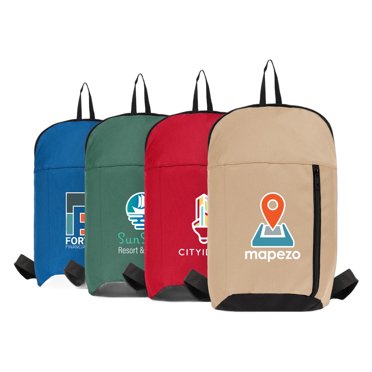 Introducing our versatile Venture Sport Backpack, thoughtfully crafted to support your active lifestyle. Made from durable 100% 600D RPET polyester, it features a 210D RPET backside and adjustable shoulder straps for a comfortable, customized fit on every adventure. The backpack's spacious main compartment and front zippered pocket provide ample room for all your essentials, while a convenient webbing handle at the top makes carrying a breeze. With a 10-liter capacity and a weight limit of 4 kg, this backpack is the perfect blend of functionality and portability. Complies with Prop 65. 15.75" H x 9.45" W x 4.53" D