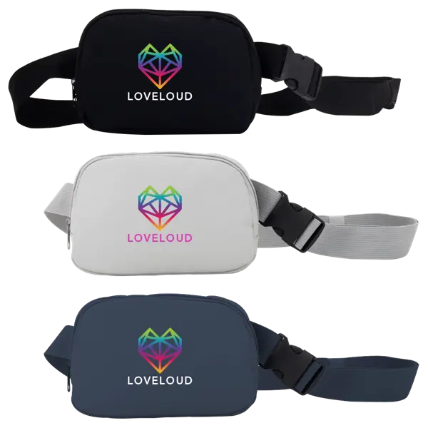Meet your stylish sidekick for adventures big and small. Made from recycled PU, this versatile bag pulls double duty as a crossbody or belt bag, giving you hands-free convenience with flair. The adjustable shoulder strap offers a custom, comfy fit for every wearer. Inside the main zippered compartment, you'll find a mesh pocket to keep your phone and small essentials right where you need them. An outer zipper pocket provides quick access to keys, wallet, or lip balm, because life is easier when. 8.7" W x 5.9" H x 2" Diameter