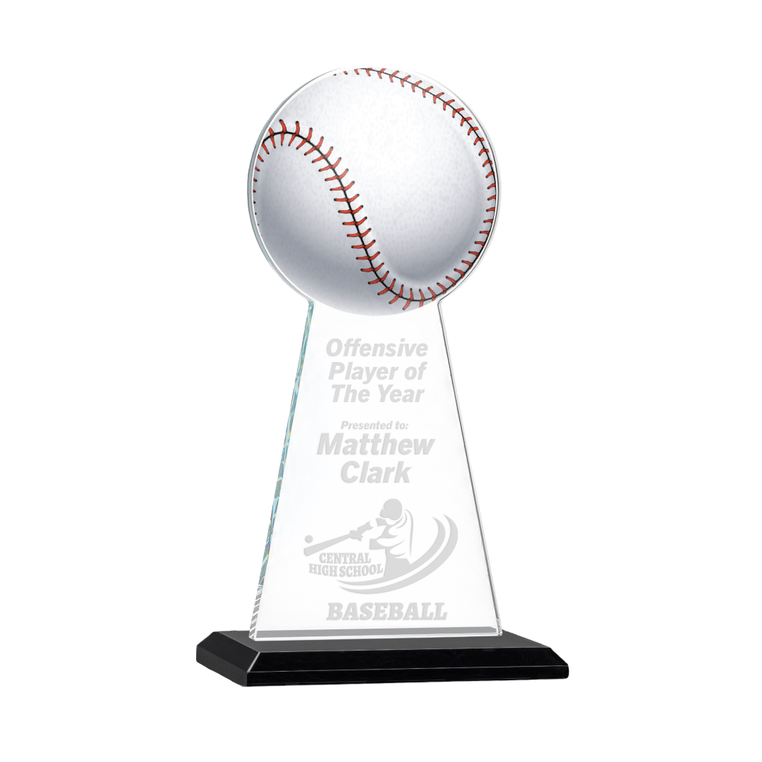 The Victory Award brings the spirit of the game to any recognition moment with its sleek sports-themed design, available in a variety of popular ball shapes. Crafted with smooth, sloping sides that rise to a detailed ball accent, this award is a meaningful way to celebrate tournaments, exceptional performances, and the dedication of players, coaches, staff, and volunteers. Finished with a beveled base for added style and stability, it?s a winning choice for sports-related recognition. 5" W x 9.5" H x 3" D