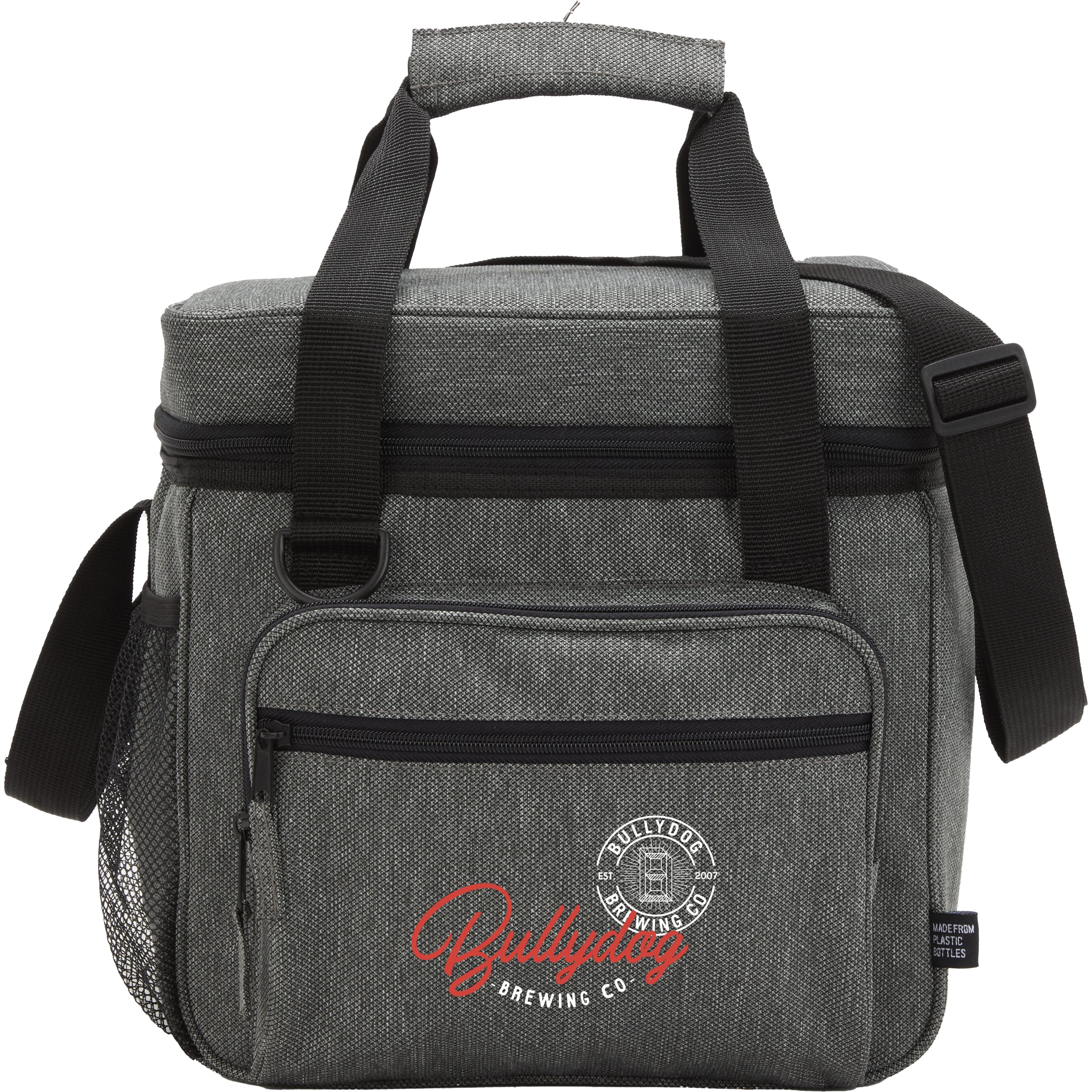The Vila Recycled 24 Can Event Cooler is a great sustainable option to keep food and drinks chilled at any event! Featuring a large zippered main compartment for easy access and effortless cleaning. Equipped with two zippered front pockets for extra storage and quick access. This cooler also has an adjustable, padded cross-body strap and study carry handles with a padded grip. Crafted from 600D rPET. 8.30" D x 10.50" W x 10.50" H