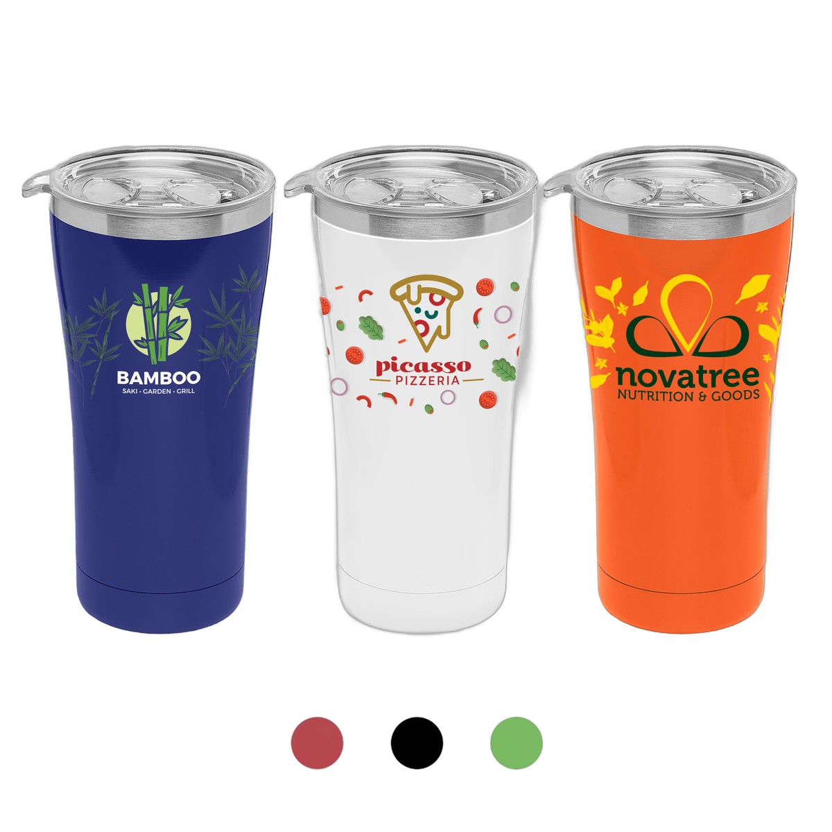Set out on your next adventure with the Voyage travel companion. This stylish and tall 21 oz. tumbler features a stainless steel contoured base, available in a variety of popular colors to match your brand. Designed for daily use, it includes a clear plastic snap-on, spill-resistant sip-top lid. The Voyage is vacuum-insulated, making it perfect for both hot and cold beverages, keeping drinks at the ideal temperature for up to 6 hours. Customize with a 1-color silkscreen imprint. CA Prop 65 compliant, BPA free, and meets all FDA requirements. Complies with CPSIA, FDA, Prop 65. 7.68" H x 3.39" W