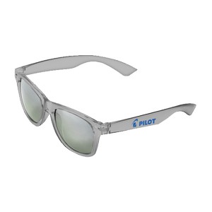 Translucent wayfarer-style sunglasses with matching mirror-finish lenses. Polycarbonate lenses provide 100% UVA/UVB protection. 5.625" D x 5.52" W