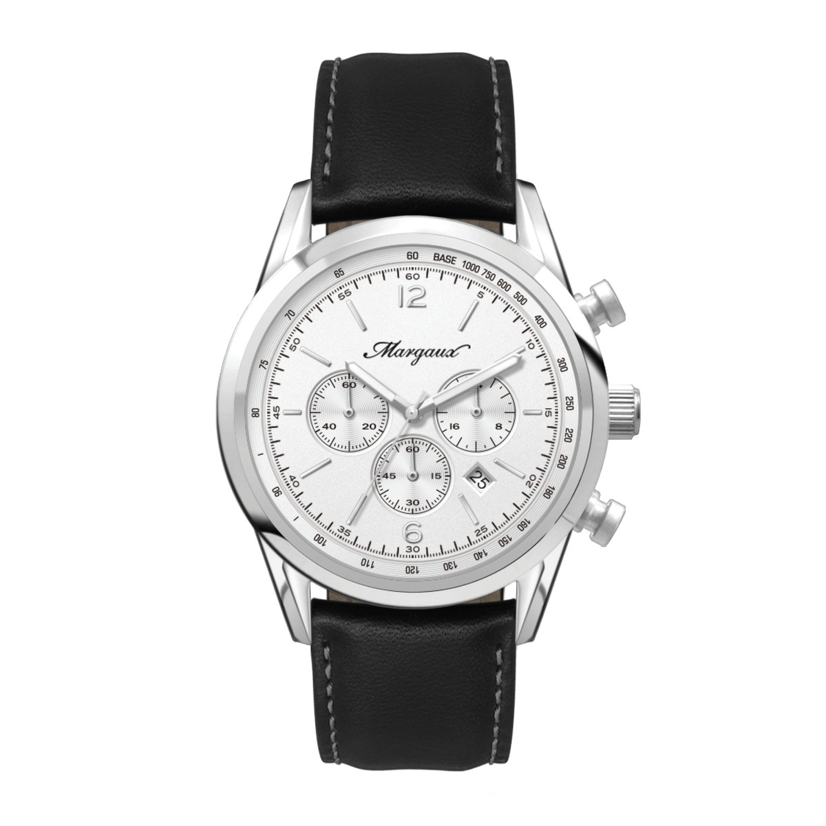 42mm steel silver case, chronograph mvmt, white dial, dte display, leather strap, flat mineral crystal, 10 atm wtr resistant. Complies with Prop 65. 1" W x 1" H x 1" D