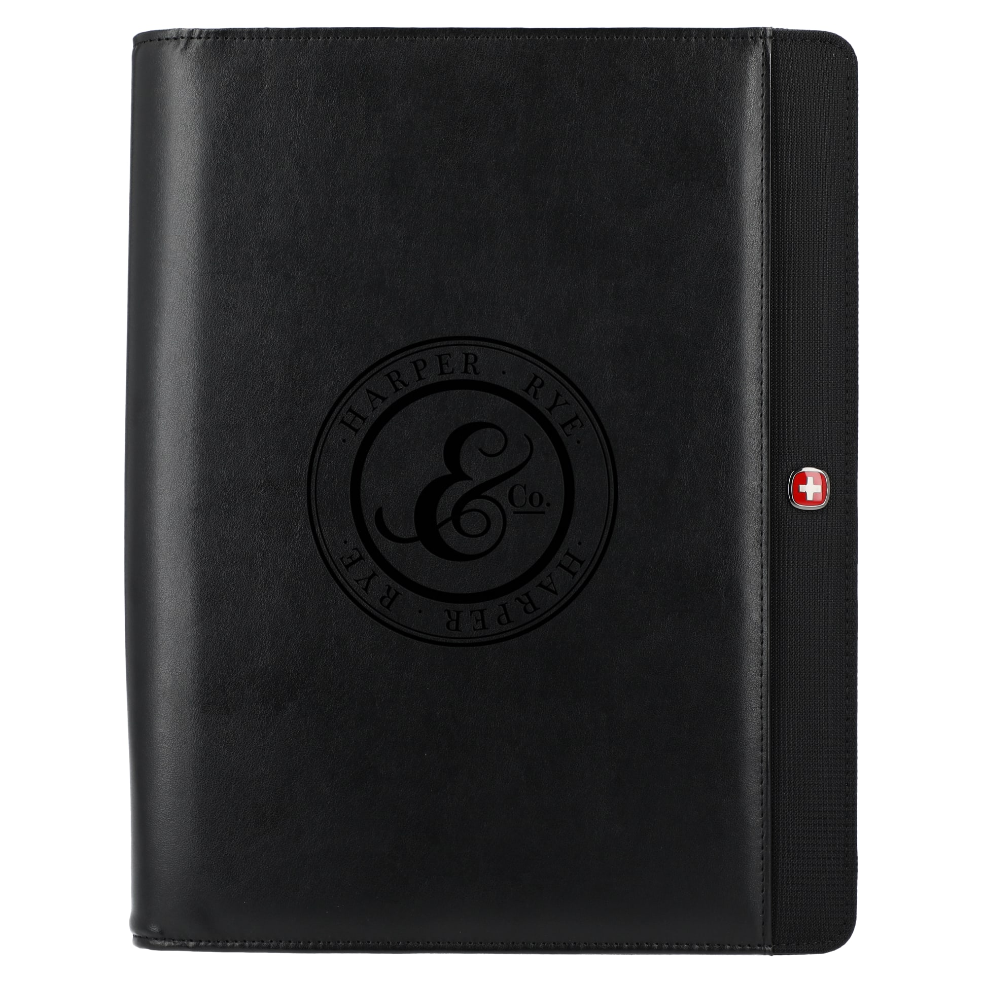 The Wenger Recycled Tech Zippered Padfolio features a recycled PU cover material and 30 pages of white recycled lined paper. Interior includes pockets, business card pockets, elastic loops and pen loop. Includes white recycled gift box. 1.42" D x 9.84" W x 12.68" H