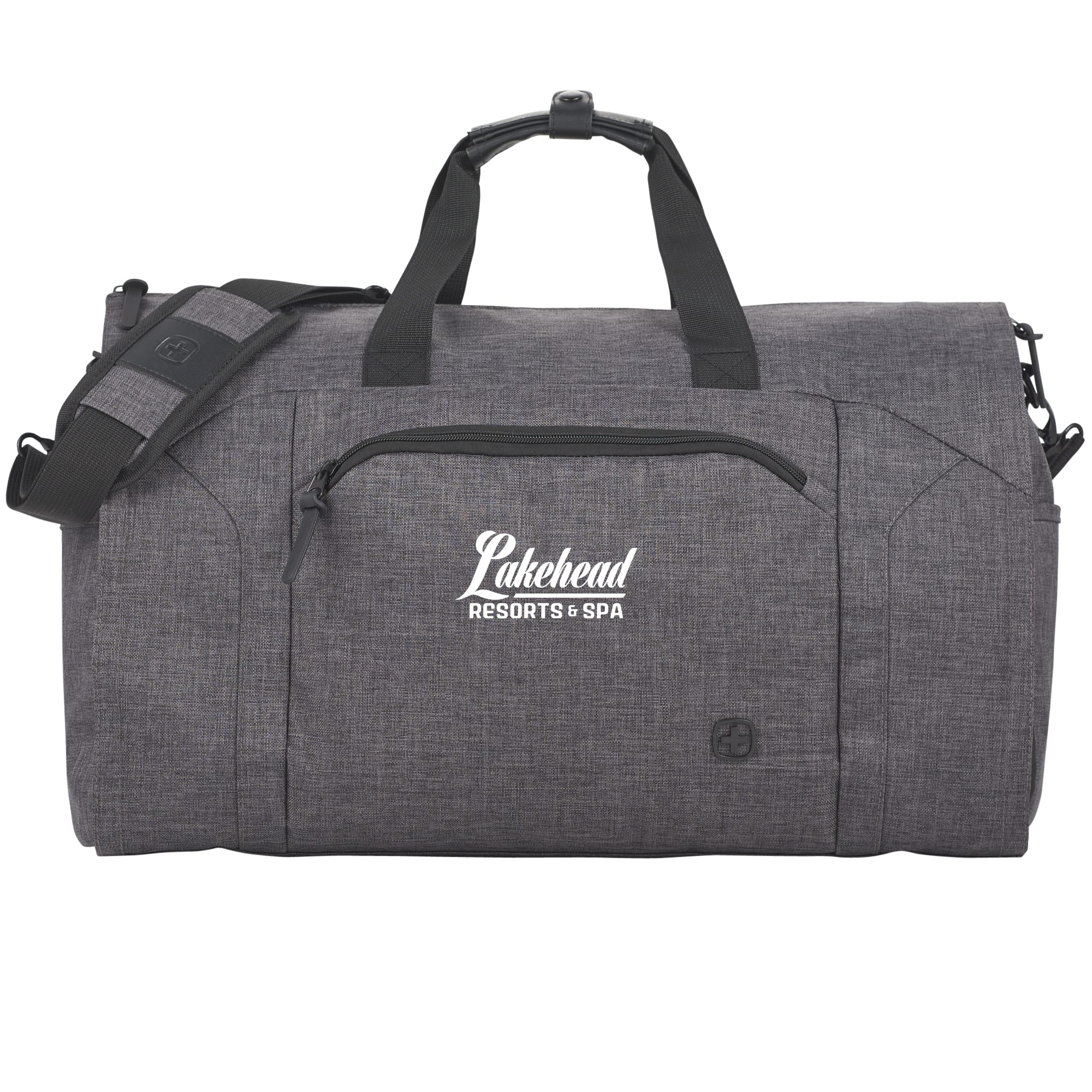 The Wenger Getaway 20'' RPET Garment Duffel combines the functionality of a garment bag with the portability and simple elegance of a luxury duffel bag. The main compartment unzips to reveal side sleeves for shoes, designated garment storage and space for an entire weekend's worth of clothing. The exterior boasts two side accessory pockets and pockets on the front and back of the duffel for last minute items. Through a partnership with 1% For The Planet, one percent of all EcoSmart® sales are donated to environmental nonprofits. 11.00" D x 20.00" W x 12.00" H