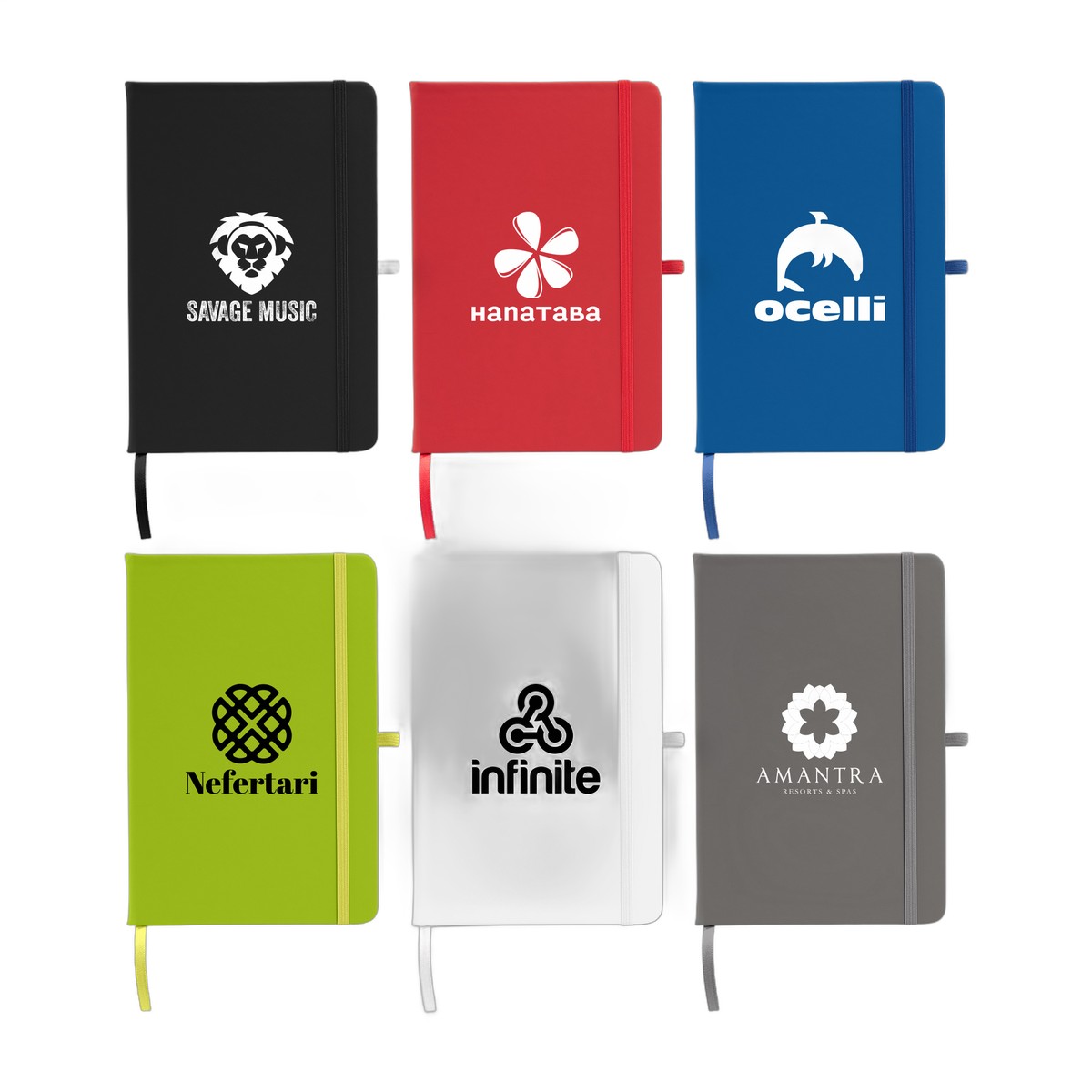 Introducing the Wilde Recycled Hard Cover Journal - A5 5.5" x 8.3", a practical and stylish choice suitable for both professionals and students. This journal features 80 sheets (160 pages) of 70 gsm paper sourced via responsible forestry in ivory color, each lined for easy writing and securely bound with glue. Its rounded edges provide a sleek, modern appearance. For added convenience, it includes a satin ribbon for effortless page marking, along with a functional elastic strap and pen loop on the back, accented with silver grommets. Show your brand's true colors with ColorJet, our full-color inkjet imprint process. Complies with Prop 65. 8.30" H x 5.59" W x 0.54" D