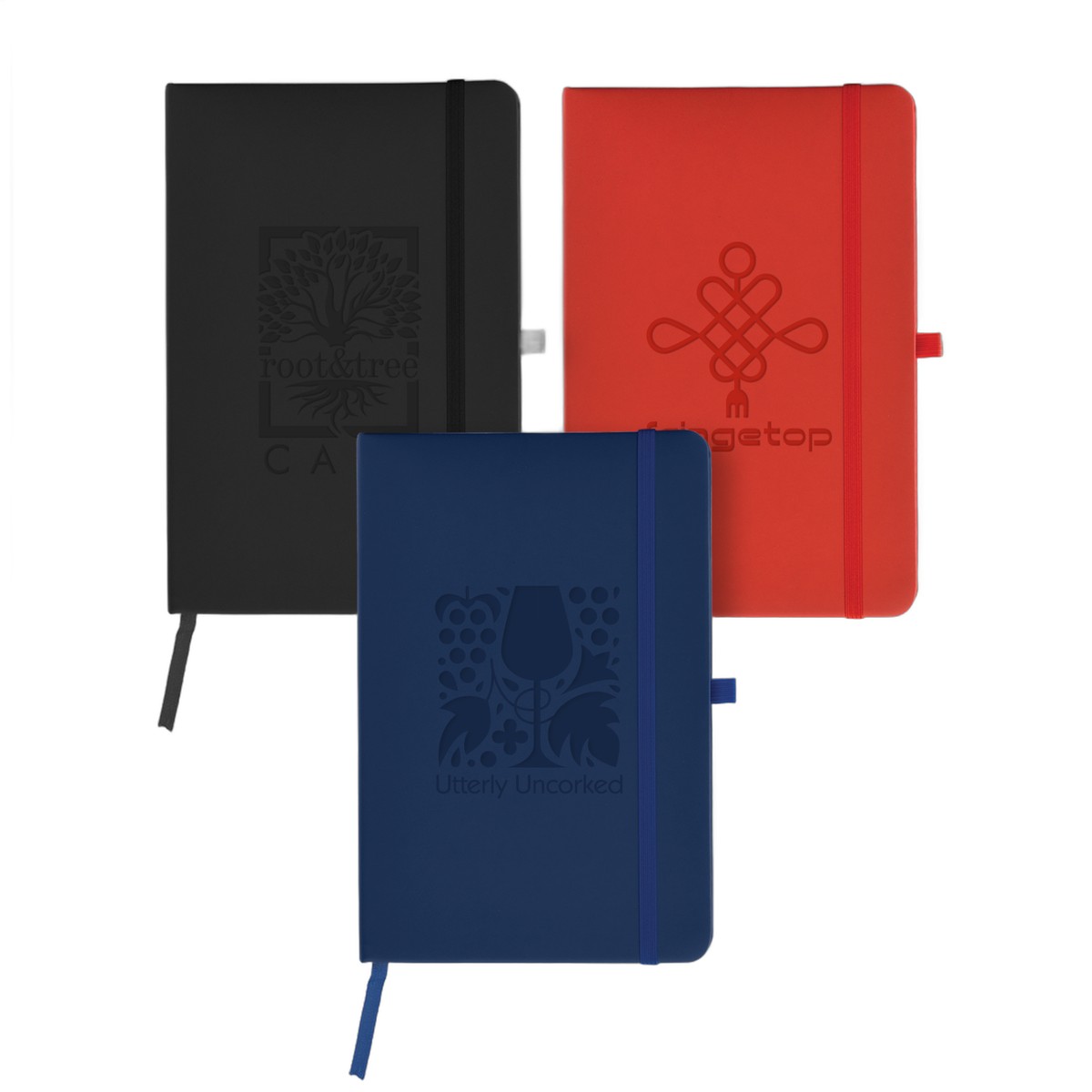 The Wilde Softy Journal is a medium-size hardcover notebook with premium soft-touch finish. It contains 80 sheets of lined ivory paper, which measures 5.5"w x 8.25"h, and also features a color-matched pen loop holder, ribbon bookmarker, and an elastic closure. Customize the front cover with your brand using ColorJet, our full-color inkjet imprint technology. CA Prop 65 compliant. Complies with Prop 65. 8.27" H x 5.51" W x 0.61" D