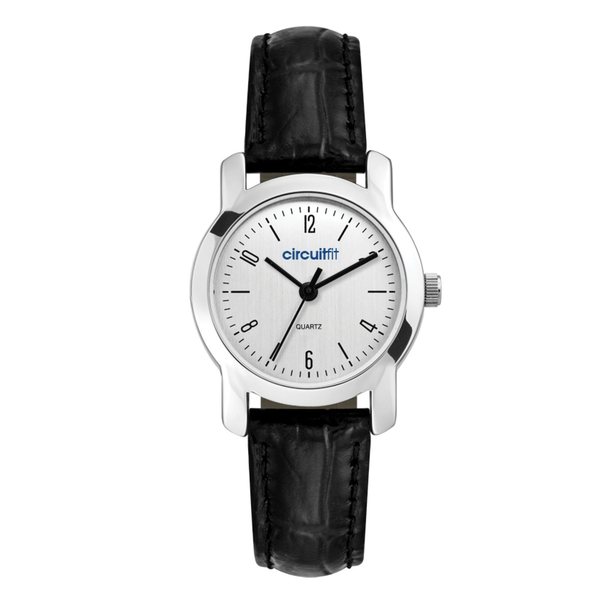 38/27mm Polished Silver Metal Case, High Precision Japanese Movement, Flat Mineral Crystal, Crocodile Pattern Leatherette Straps, Shower Resistant. Complies with Prop 65. 1 1/8"" W x 1 1/8"" H