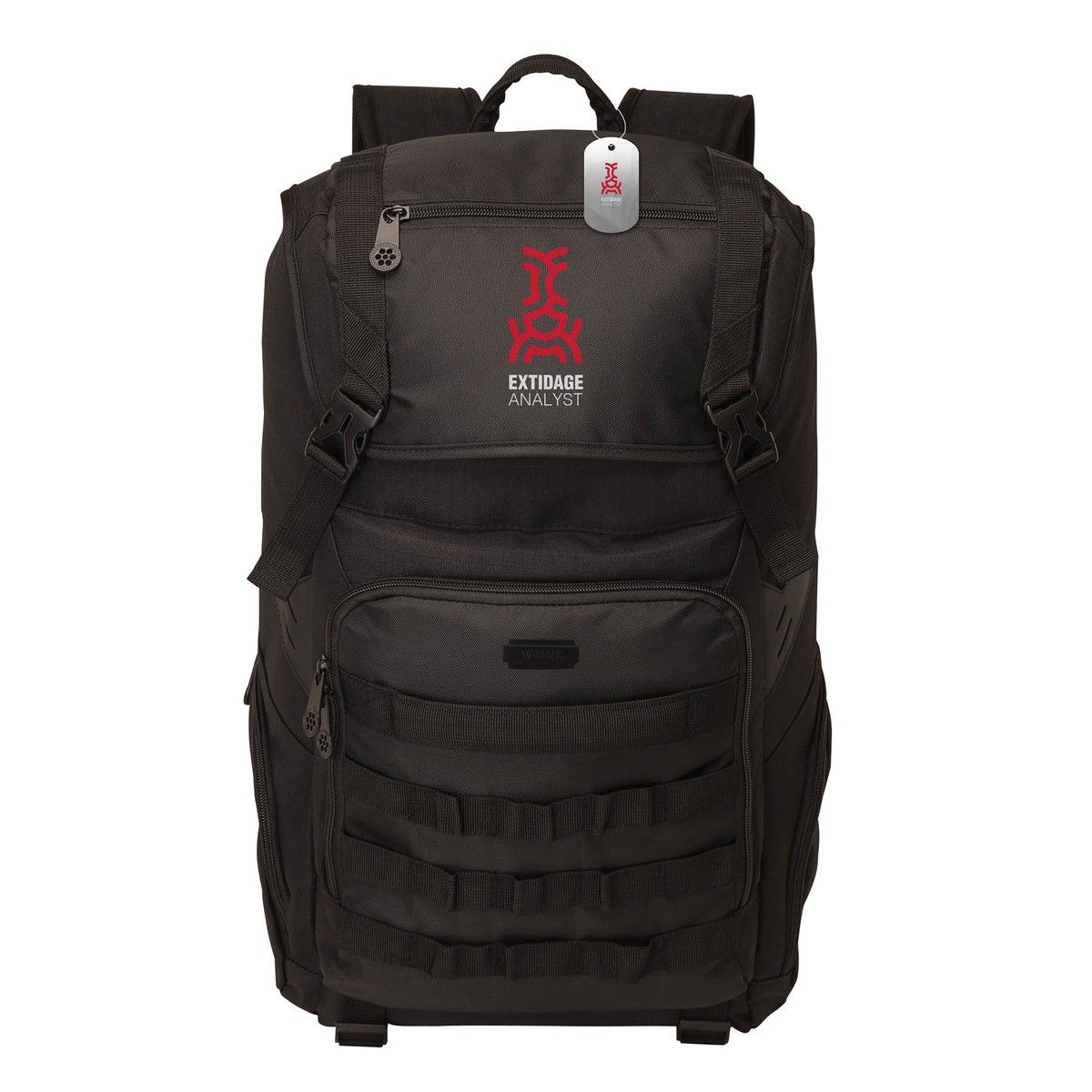 The fully-lined Work Outdoor backpack is made with durable ripstop polyester and 420D polyester dobby with 210D polyester lining. It has a deep main section with a tablet compartment, 15.6" laptop or hydration pack compartment and features a top cinch closure and buckled hood flap with zippered pocket. The outside offers a zippered front compartment with padded front grab handle, two zippered side pockets, bottom blanket/towel straps and plenty of daisy chain accessory loops along with a quick-access zippered top entry and top elastic cable/hydration hose hole. The backpack has a top carry handle, padded back, adjustable air mesh backpack straps and a chest strap. A portion of all proceeds is donated to Shelter to Soldier, a non-profit organization that rescues dogs to train as service animals for veterans in need. Complies with Prop 65. 12" W x 20" H x 7" D