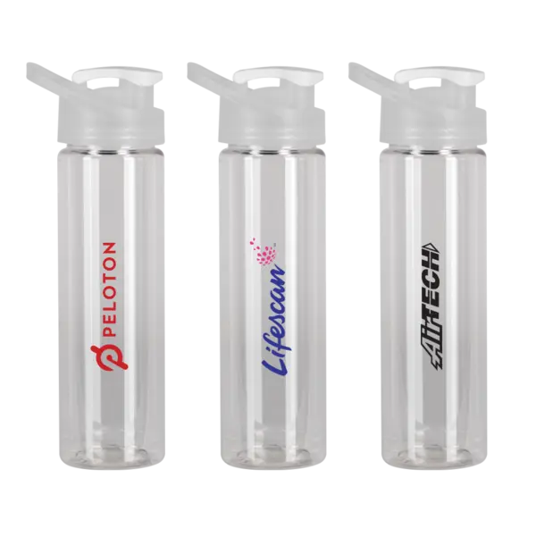 When you're pushing your limits and gettin' your sweat on, you can't simply drink, you need to guzzle that much-needed hydration.The Yuma clear freedom bottle holds a hefty 25 oz. and features a guzzler lid for replenishing fluids that much faster. Your customers will win the day and you'll win impressions for your brand. Pad print your logo on this must-have bottle today. Proudly made in the USA with PET plastic. Complies with Prop 65. 2.75" W x 9" H