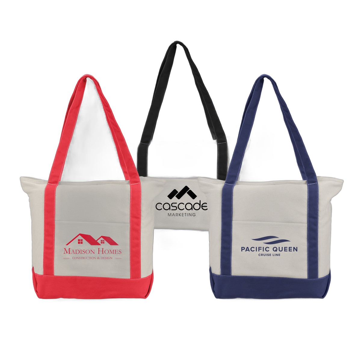 The Zephyr is a reusable canvas tote bag made from 12 oz. cotton canvas and features a strong base, durable carrying straps, front pocket, and a zipper closure. This canvas tote bag is a great size for daily errands, and its sturdy construction will certainly be appreciated by customers. Select a trim and . 13.00" H x 17.00" W x 6.10" D